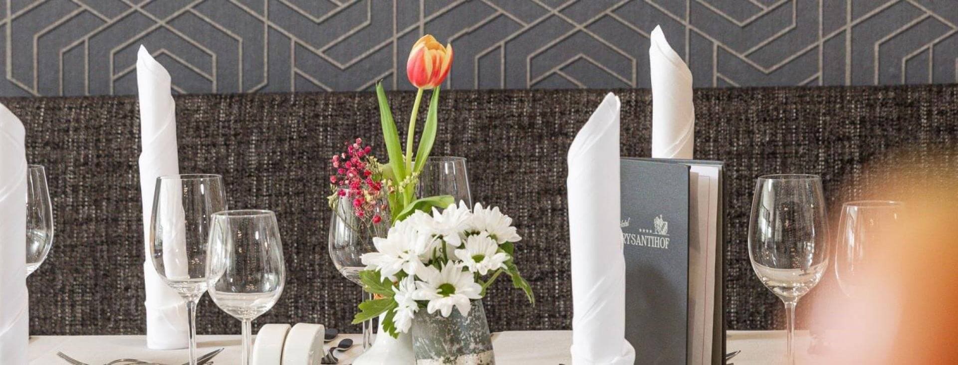 Ideal für alle, die etwas mehr wollen: Unsere Verwöhnhalbpension bietet Ihnen neben einem reichhaltigen Frühstücksbuffet ein 4-Gang-Abendmenü mit verschiedenen Wahlgerichten, Salatbuffet und einem Käsebrett in unserem ausgezeichneten Restaurant in Niederbayern.